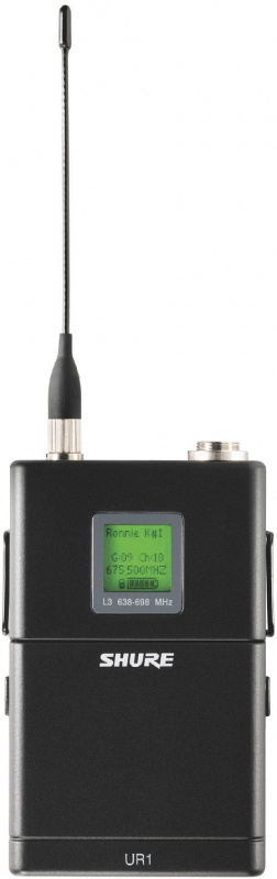 The UR1 wireless bodypack transmitter, built from lightweight magnesium, offers a sweat-resistant, compact design engineered to withstand the abuses of the road. It works with headworn, lavalier, and instrument microphones and cables. Its removable antenna provides additional flexibility, and a threaded connector securely locks microphone or instrument cables. Other advanced features include a multi-function bit-mapped LCD, frequency and power lockout and infrared automatic transmitter sync. The UR1 can be used continuously for up to 8 hours using 2 x AA batteries (included).
