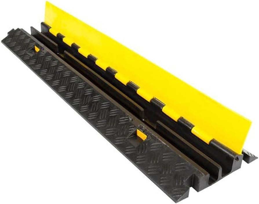 The 2 Channel Cable Cover/Ramp offers durable protection and organization for cables with a heavy-duty, slip-resistant design, ideal for high-traffic areas in events, construction sites, and commercial settings.