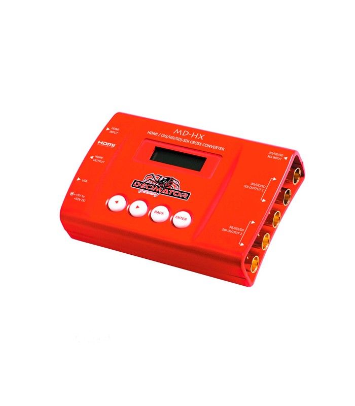 The Decimator MD-HX HDMI/SDI Cross Converter is a compact, powerful, and versatile video converter designed for professional broadcast, production, and post-production environments. This device offers seamless cross-conversion between HDMI and SDI signals, making it an essential tool for anyone needing to integrate different types of video equipment into a cohesive workflow. The MD-HX not only converts signals but also provides advanced scaling, frame rate conversion, and aspect ratio adjustment, ensuring that your video output is perfectly suited to your needs.